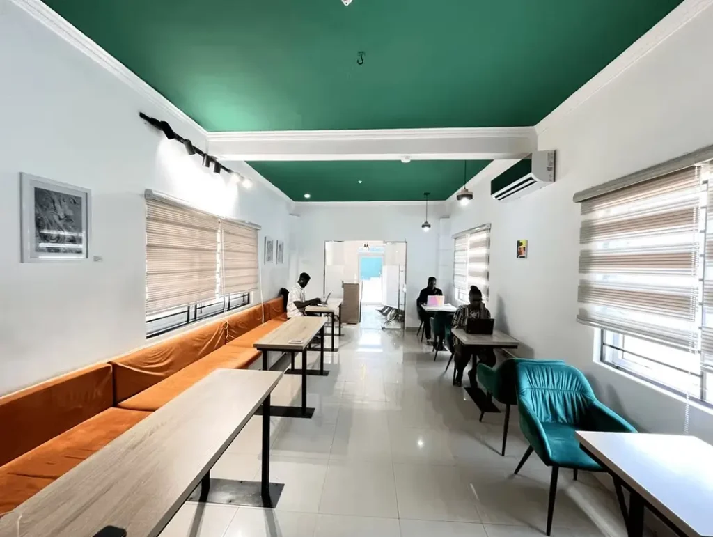 Kukun doubles as a café and coworking hub, making it one of Accra’s most vibrant spaces. Located on a quiet street in Osu – Ako Adjei, Kukun attracts freelancers, developers, and remote workers who value both work and community.